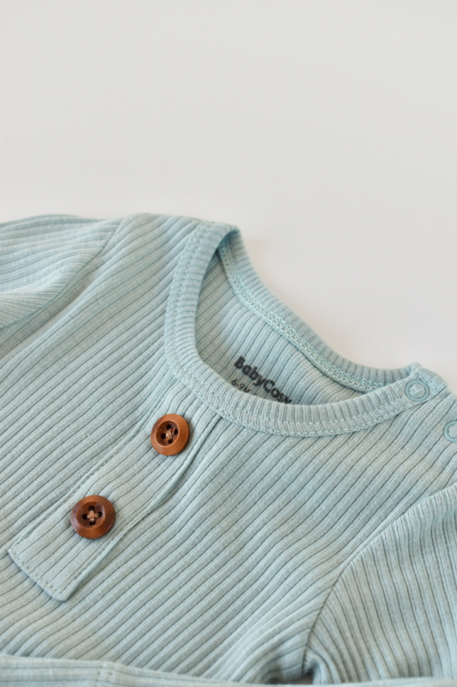 Salopeta lunga din bumbac organic si modal Baby Cosy Mint marime 18-24 luni