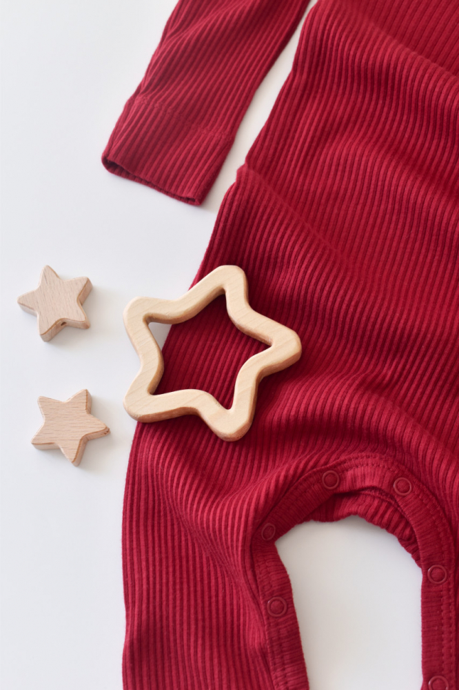 Salopeta lunga din bumbac organic si modal Baby Cosy Rosu marime 9-12 luni