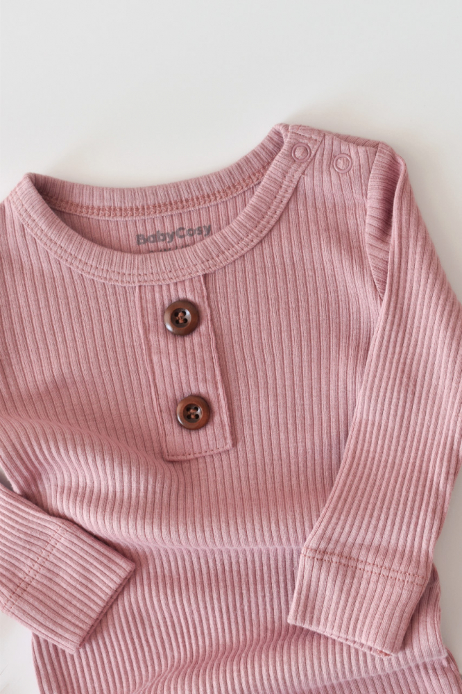 Salopeta lunga din bumbac organic si modal Baby Cosy Roz marime 0-3 luni