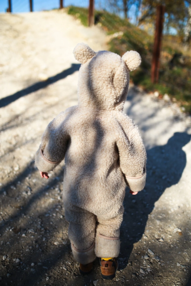 Salopetă din lână merinos pentru bebeluși – Bej | Căldură naturală „Ursuleț de pluș”
