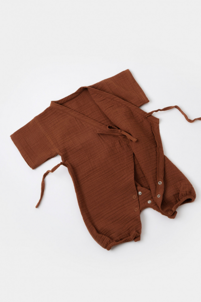 Salopeta petrecuta din muselina BabyCosy bumbac organic Caramiziu 18-24 Luni