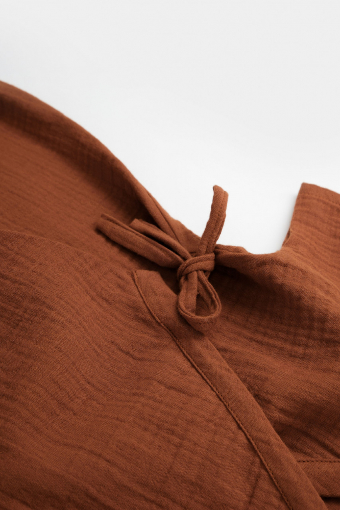 Salopeta petrecuta din muselina BabyCosy bumbac organic Caramiziu 9-12 luni