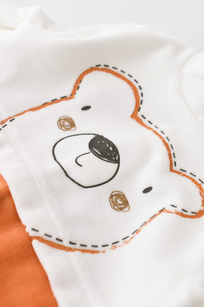 Salopeta Ursulet cu maneca lunga si botosei Baby Cosy Portocaliu marime 0-3 luni