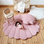 Saltea de joaca din catifea, Seashell, Little Amy, Roz Pudrat, 115 x 110 cm
