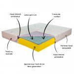 Formata din doua straturi, unul din spuma ultima generatie si unul din latex gel integral, profilat pe 7 zone ce are rolul de a mentine o temperatura constanta.