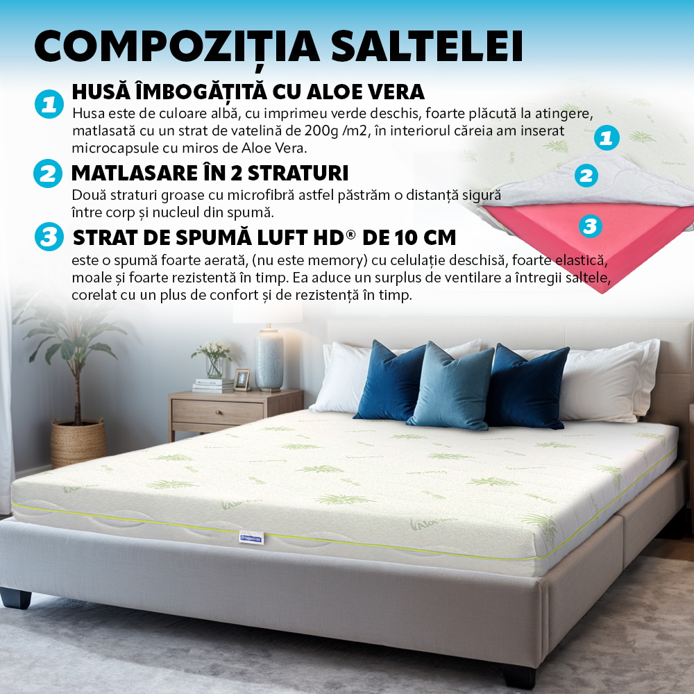 Efortul nucleului din spuma Luft HD este dublat de o husa Aloe Vera, foarte performanta.