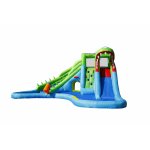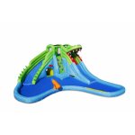 Saltea gonflabila Crocodil cu doua tobogane cu apa, tun de apa, spatiu de catarat si cos de baschet