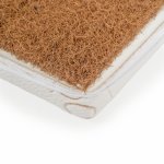 Strat de cocos: Pe cealalta parte a saltelei se afla un strat de 2 cm de fibre naturale de cocos, care ofera fermitate suplimentara si suport ortopedic. Fibrele de cocos sunt in mod natural antibacteriene si hipoalergenice, ceea ce le face ideale pentru persoanele cu piele sensibila si alergii. De asemenea, permit o ventilatie excelenta, mentinand salteaua uscata si proaspata.