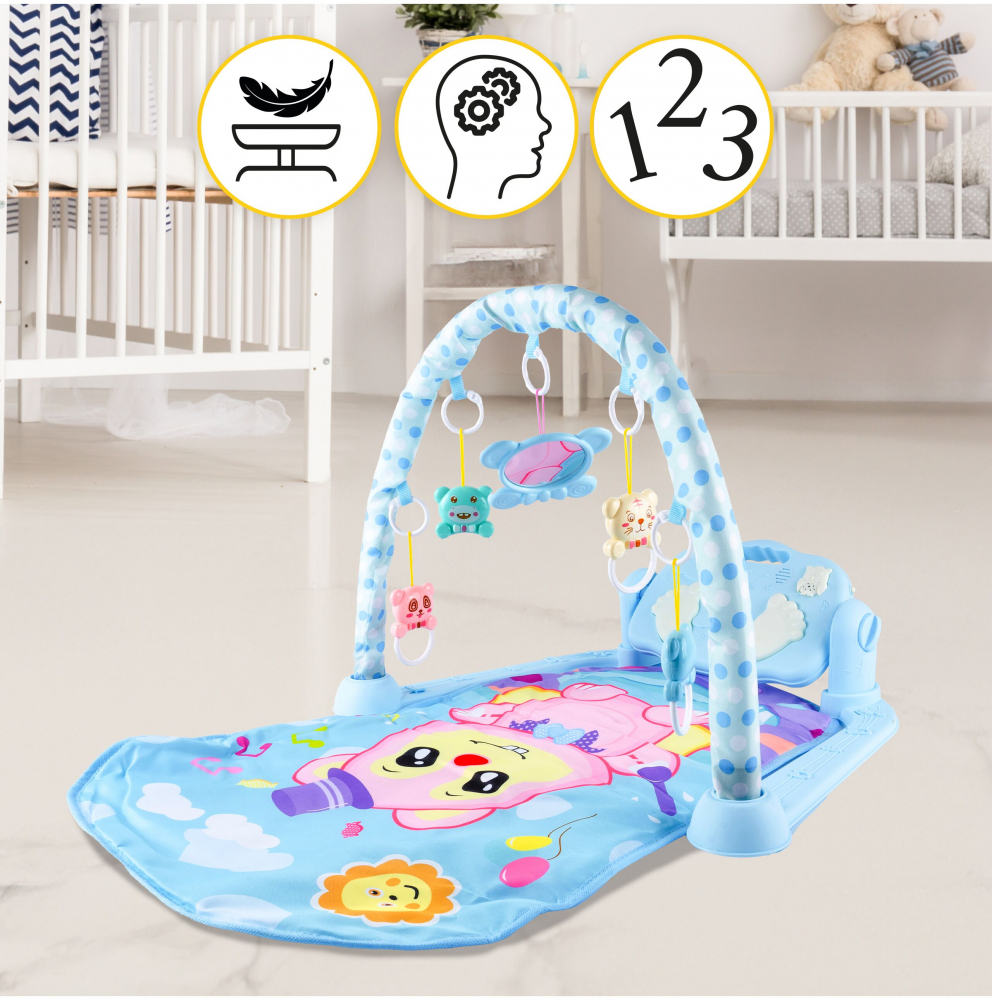 * Este colorata si are o multime de caracteristici care il vor mentine interesat, cum ar fi o bara cu jucarii suspendate si o oglinda.