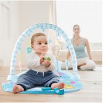 * Salteluta este, de asemenea, echipata cu un pian cu doua clape, care poate fi activat prin atincerea cu piciorusele (in timp ce micutul se joaca stand intins pe spate), un proiector de lumina si jucarii colorate.