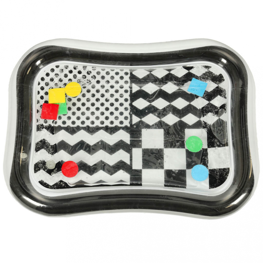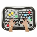 Un covoras senzorial senzational pentru bebelusi, cu un model contrastant alb-negru.
