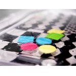 In interiorul covorasului au fost plasate figuri geometrice colorate , care se vor misca sub influenta miscarilor copilului.