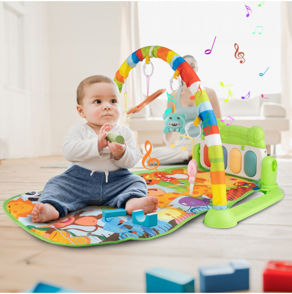 Covorasul are si un mic pian, cu ajutorul caruia il veti incuraja pe micutul copilas sa exploreze minunata lume a muzicii.