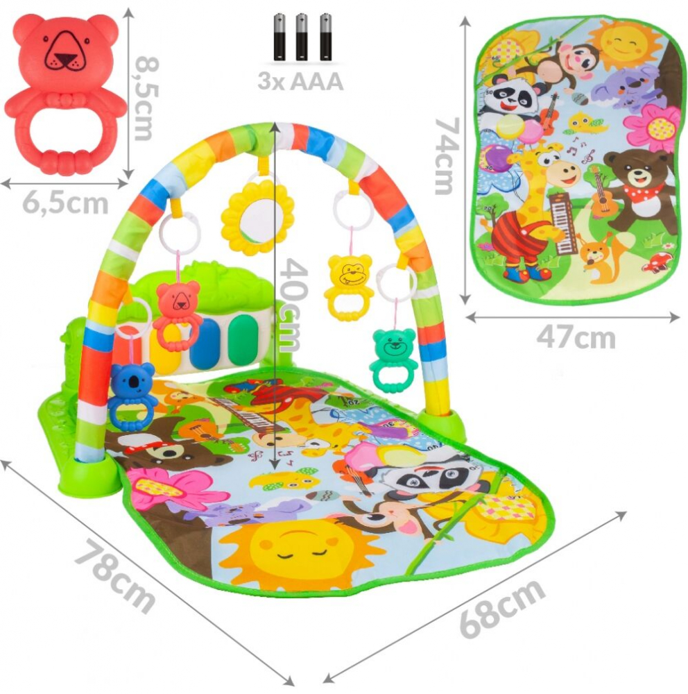 Covorasul are si un mic pian, cu ajutorul caruia il veti incuraja pe micutul copilas sa exploreze minunata lume a muzicii.