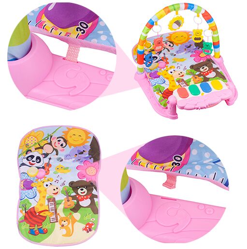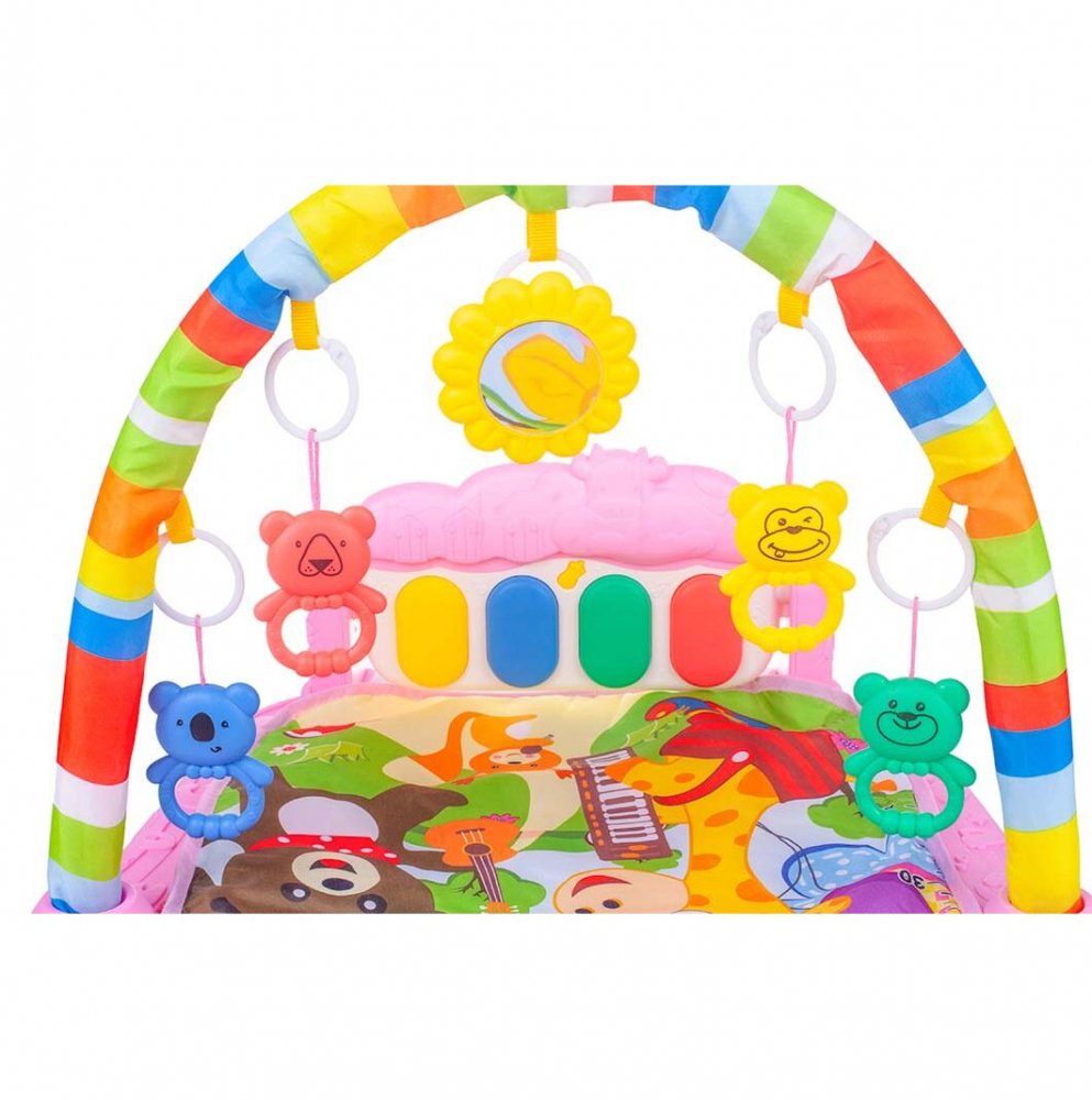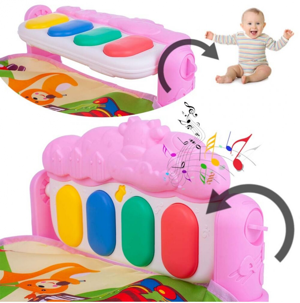 Salteluta interactiva pentru bebelusi, moale si colorata cu laterala gradata, Pian si Zornaitori suspendate, 47 x 74 cm Sunshine Pink