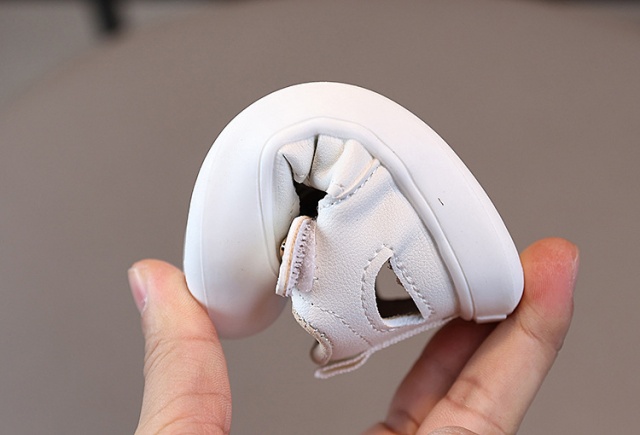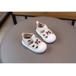 Sandale albe pentru fetite, ideale pentru sezonul cald, cu design decupat si decoratiune delicata in forma de inimioara brodata cu cirese.