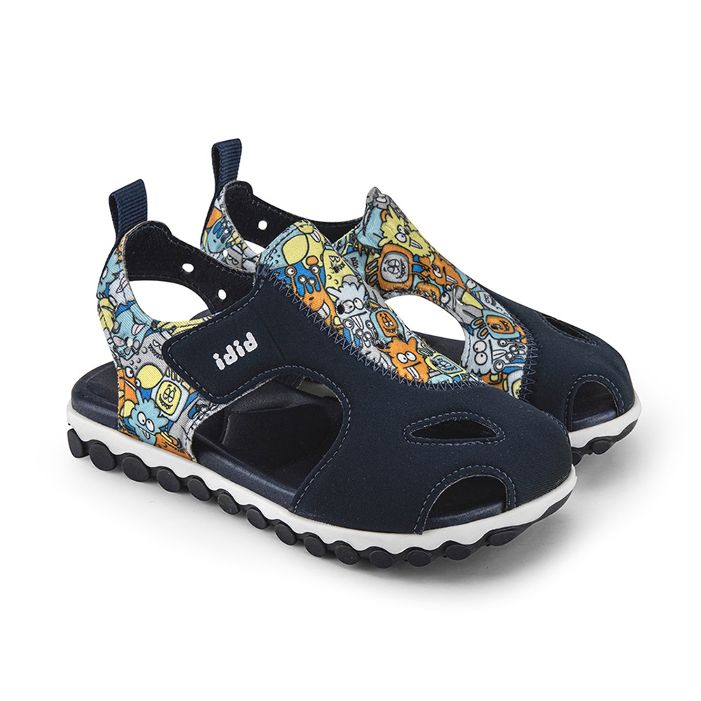 Sandale cu un design super modern, din material textil elastic, cu ornamente cu model in relief, cusaturi in zig zag si inchidere cu velcro pentru a fi mai usor de purtat.