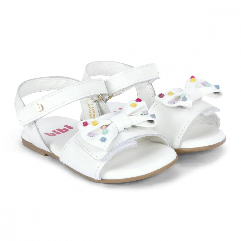 Sandale pentru fetite, din piele. Design modern cu funda si aplicatii colorate, prevazut cu sistem de inchidere cu velcro peste picior. Au un brant care gazduieste piciorul, oferind un confort mai mare, flexibilitate si siguranta.