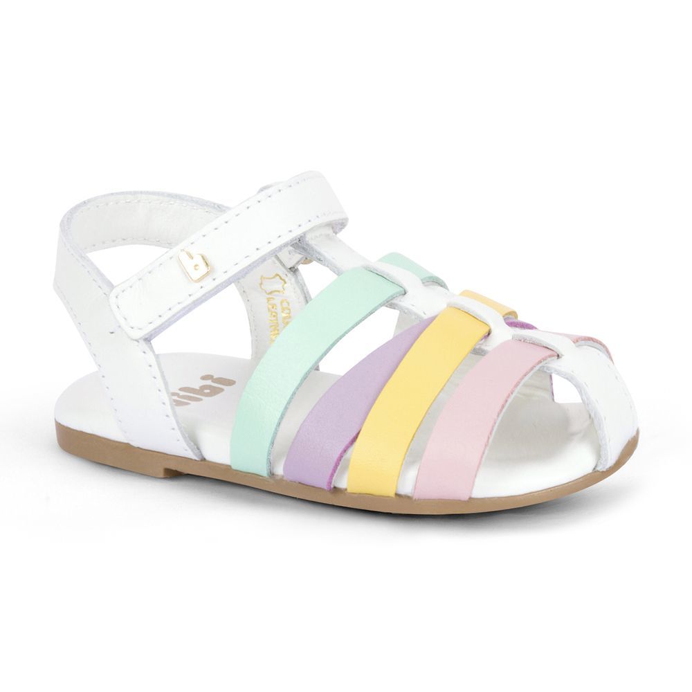 Sandale pentru fetite, din piele. Design modern cu funda si aplicatii colorate, prevazut cu sistem de inchidere cu velcro peste picior. Au un brant care gazduieste piciorul, oferind un confort mai mare, flexibilitate si siguranta.