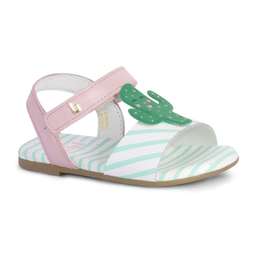Sandale pentru fetite, din piele. Design modern cu aplicatie cactus si inchidere cu velcro peste picior. Au un brant care gazduieste piciorul, oferind un confort mai mare, flexibilitate si siguranta.