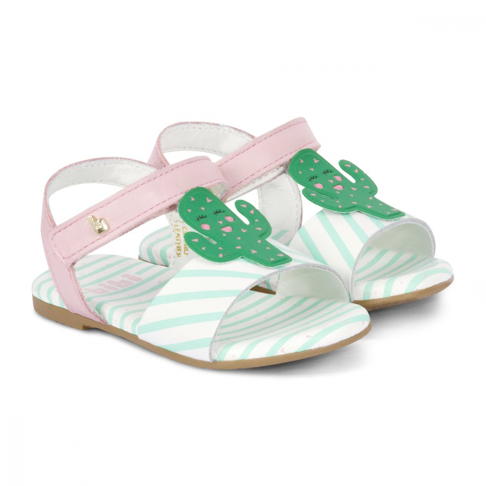 Sandale pentru fetite, din piele. Design modern cu aplicatie cactus si inchidere cu velcro peste picior. Au un brant care gazduieste piciorul, oferind un confort mai mare, flexibilitate si siguranta.