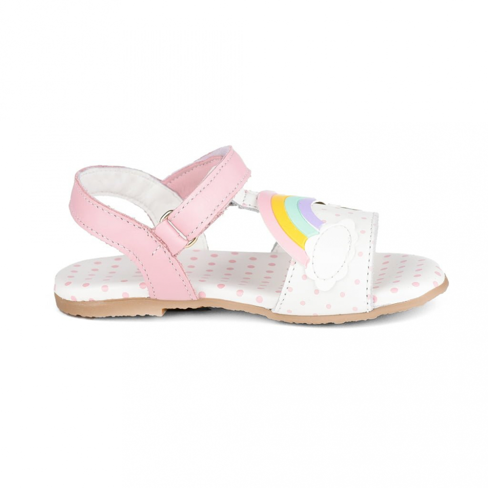 Sandale pentru fetite, din piele. Design modern cu aplicatie curcubeu si inchidere cu velcro peste picior. Au un brant care gazduieste piciorul, oferind un confort mai mare, flexibilitate si siguranta.