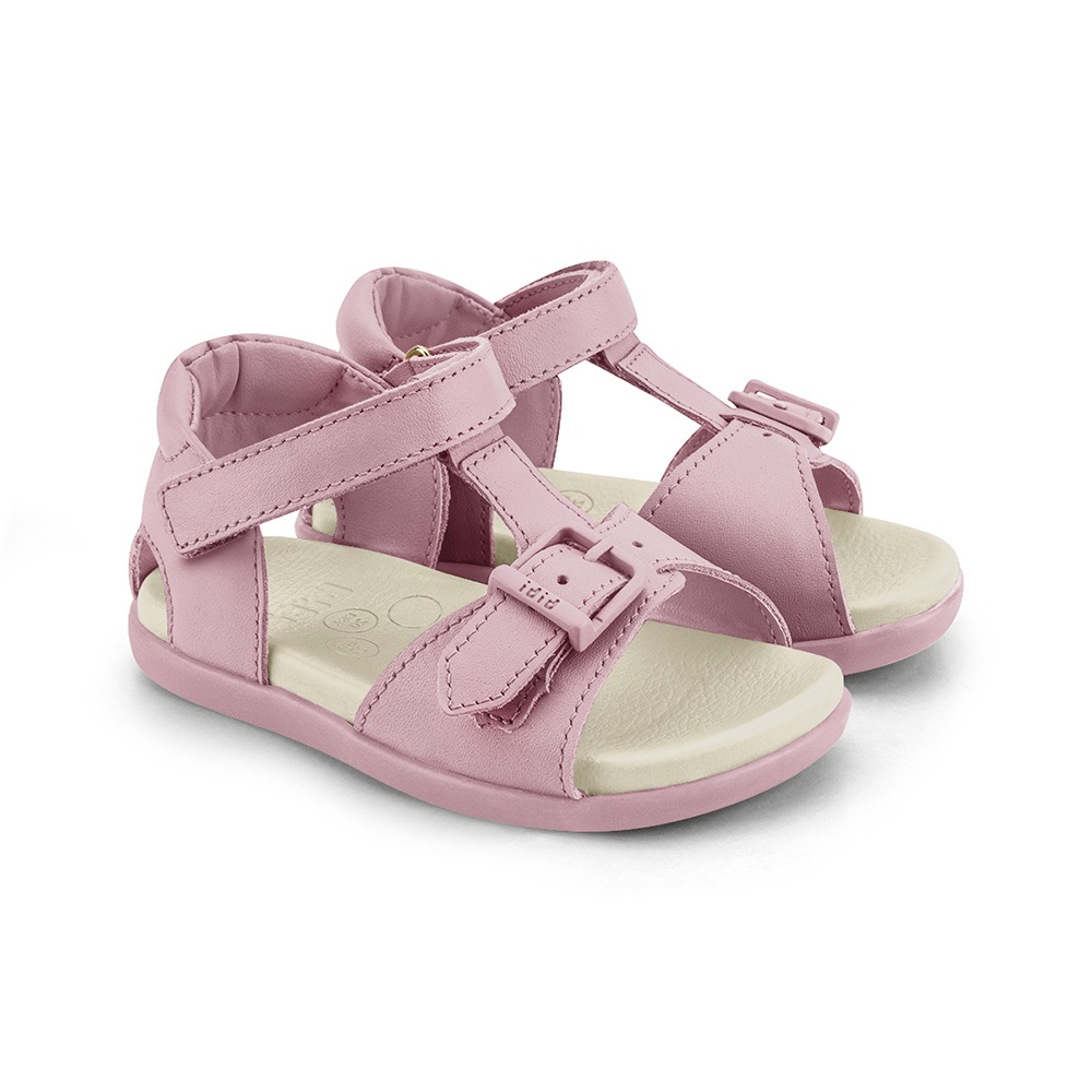 Fabricate din piele, cu aplicare de spuma pe bareta din spate asigurand confortul picioruselor, sistem de inchidere cu velcro si o catarama ce asigura o fixare usoara.