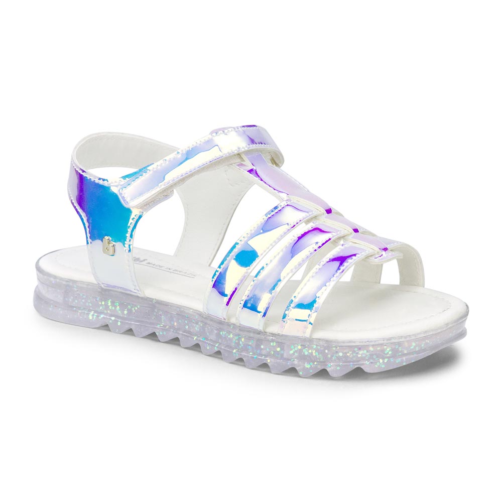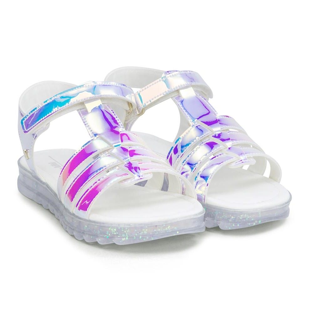 Sandale pentru fete cu design modern si aspect holografic. Prevazute cu sistem de inchidere cu velcro ce permite ajustarea pe picior si talpa usoara si flexibila ce previne alunecarea, pentru un plus de confort si siguranta.