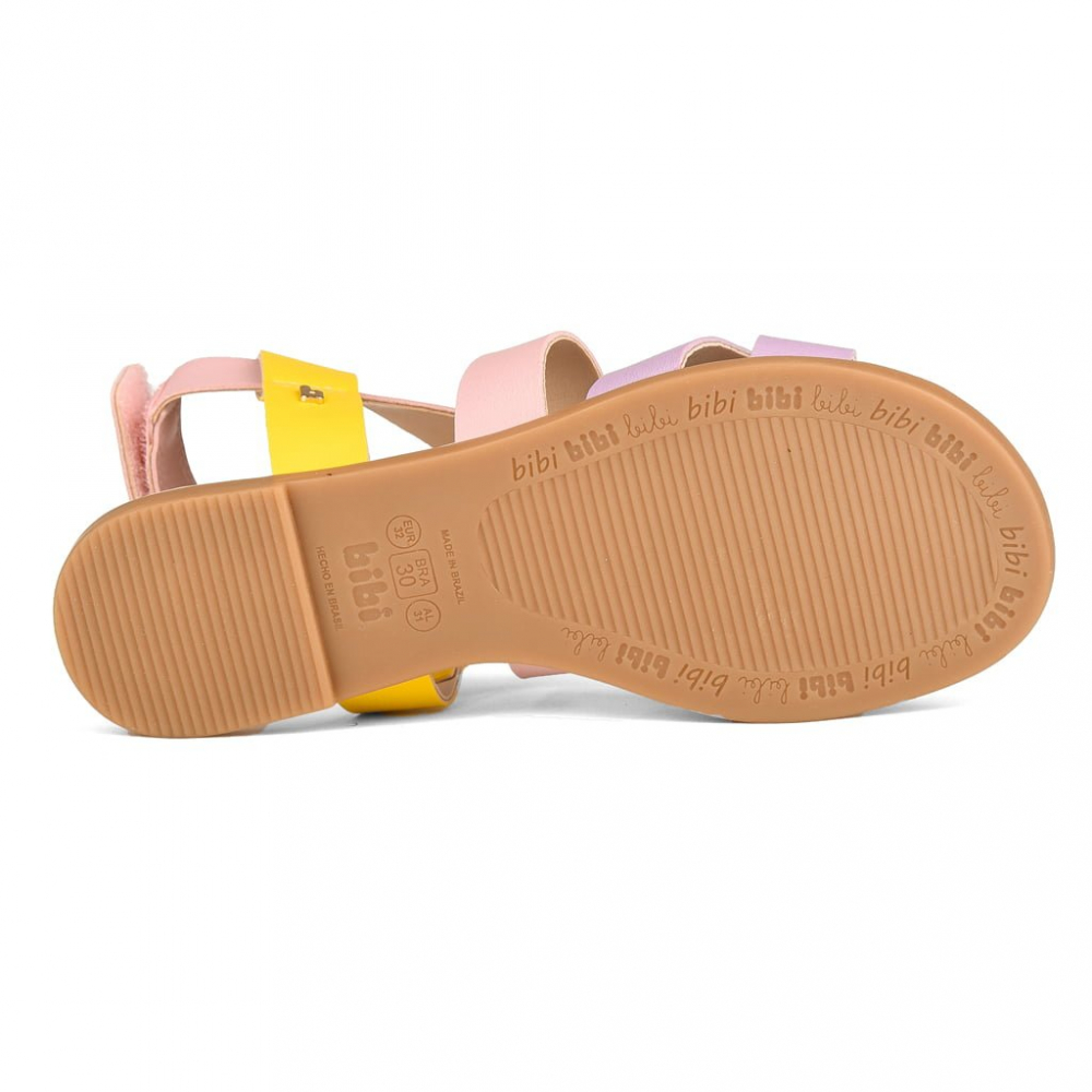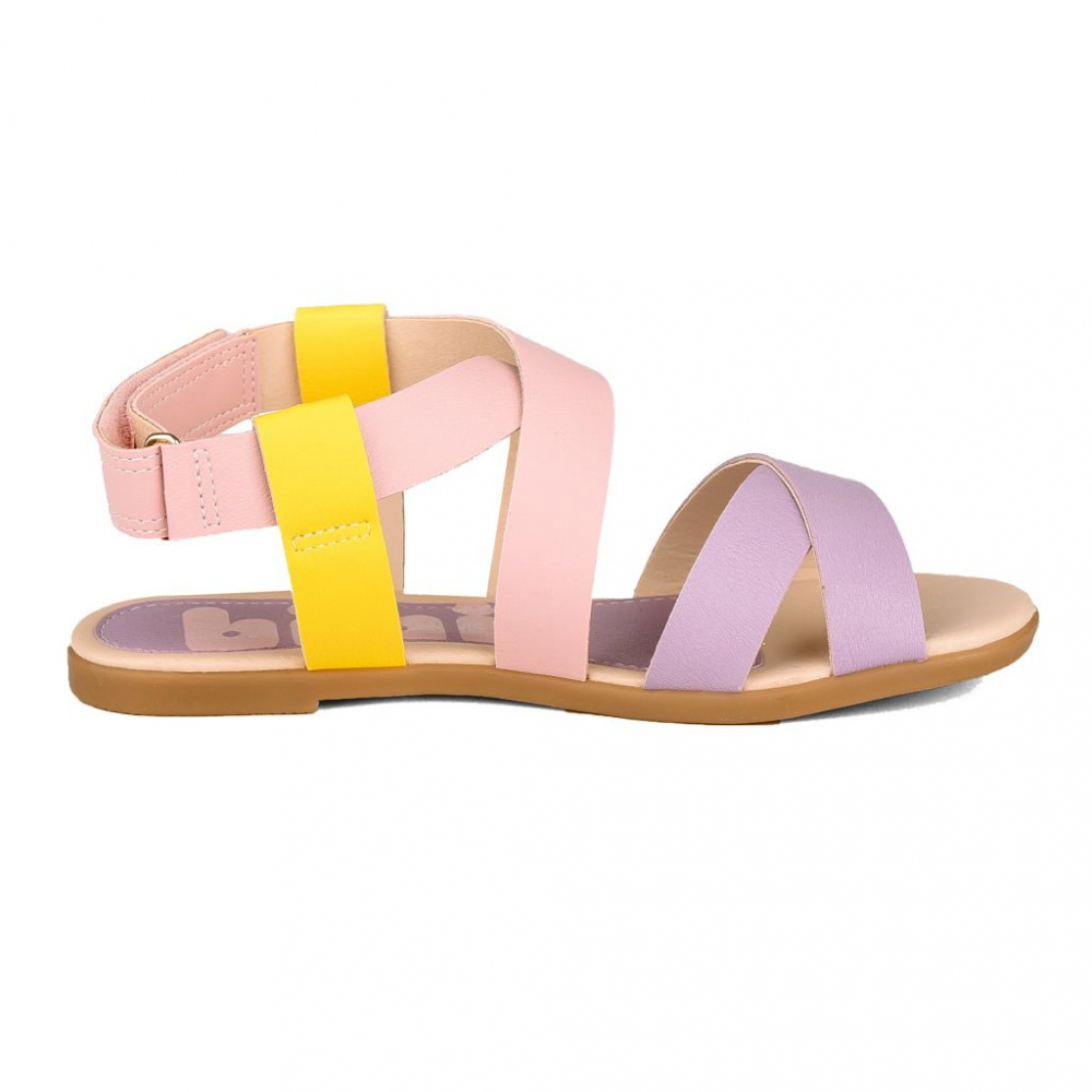 Sandale pentru fete confectionate din piele ecologica cu barete multicolore incrucisate si inchidere cu velcro deasupra gleznei. Prevazute cu un strat suplimentar de spuma în brant pentru un plus de confort si flexibilitate.