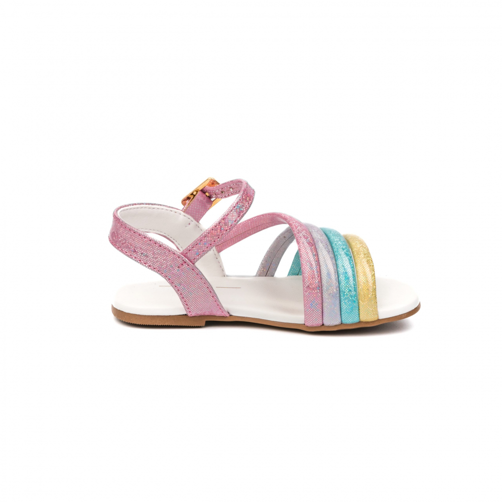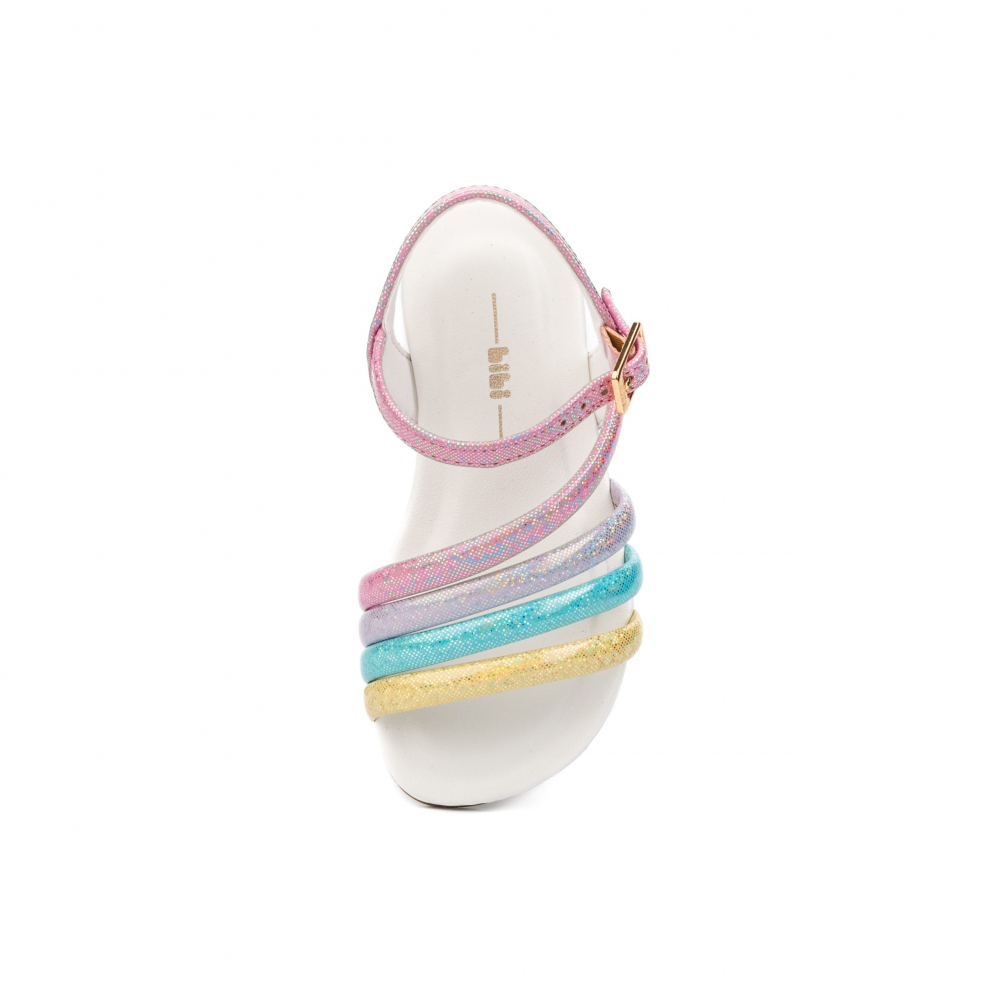Sandale speciale pentru fete, pentru iesiri sau petreceri. Confectionate din material sintetic cu insertii glitter, au inchidere cu catarama si brant cu un strat de spuma, oferind confort si stabilitate sporita la purtare.