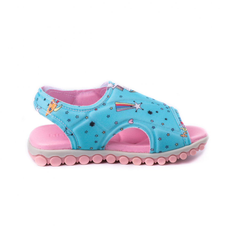 Sandale cu model unicorni imprimat, cu inchidere velcro inclusiv in partea din fata, pentru o incaltare facila. Ideale pentru picioarele pufoase. Talpa Roller este antiderapanta. Strat suplimentar de spuma in brant, pentru un plus de confort