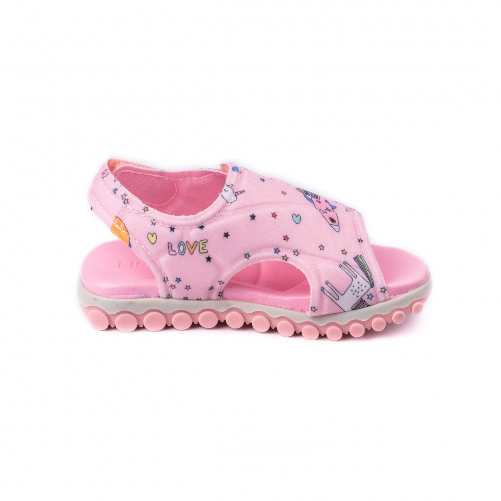 Sandale cu model imprimat, cu inchidere velcro inclusiv in partea din fata, pentru o incaltare facila. Perfecte pentru picioarele pufoase Talpa Roller este antiderapanta. Strat suplimentar de spuma in brant, pentru un plus de confort