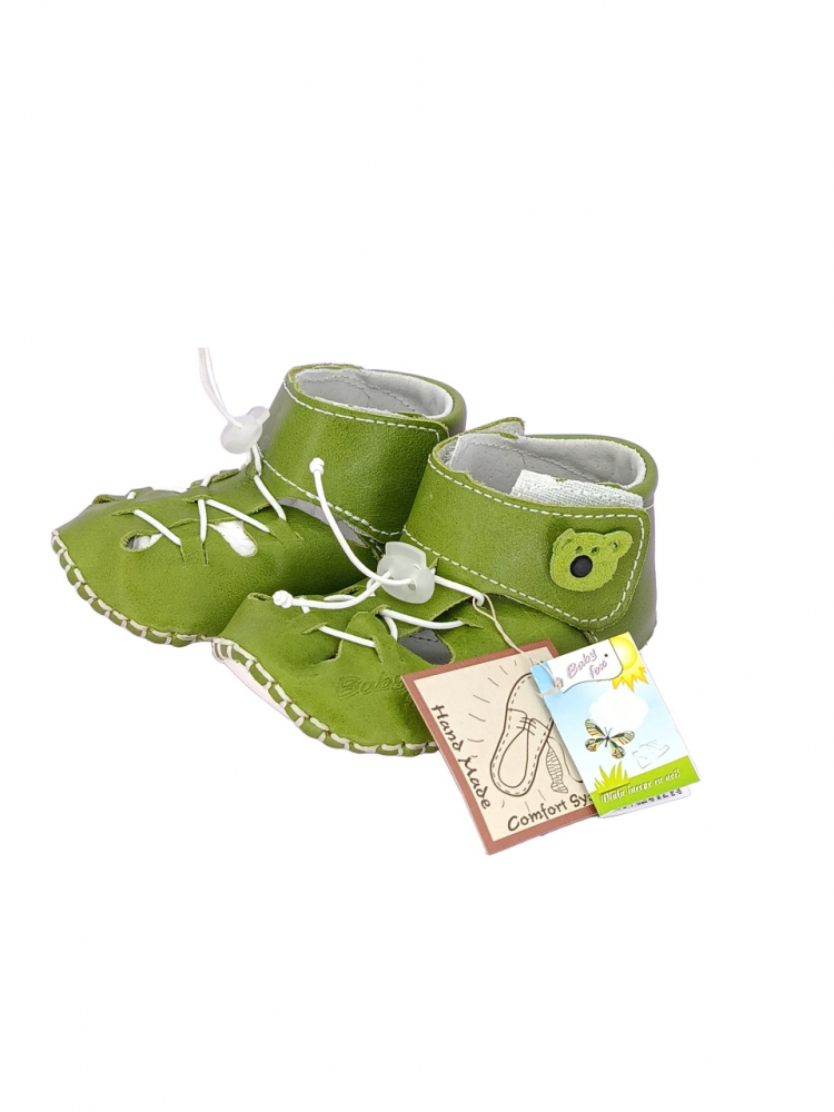 Sandale pentru copii tip Barefoot (fetite, baieti, unisex) potrivite pentru nou nascuti, trusou de botez, primii pasi, design original, cromatica si decoruri vesele, confectionate din piele naturala, tabacita in Italia, fara compusi chimici nocivi (low chrome) .