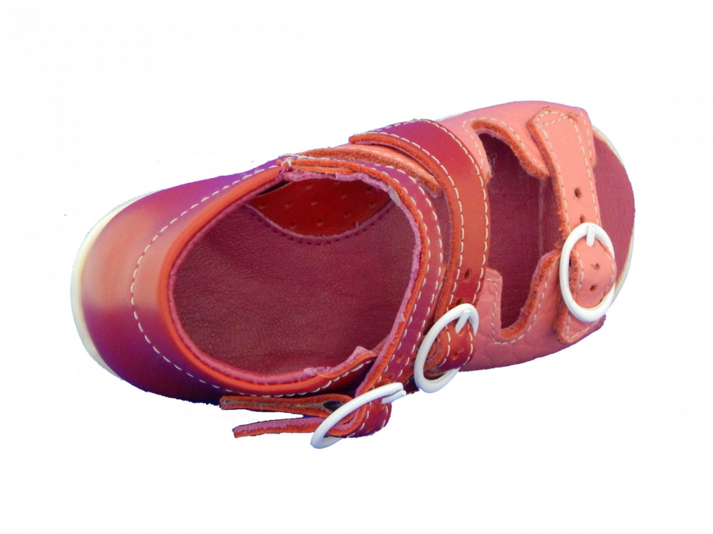Sandalele sunt confectionate din piele naturala, fara compusi chimici nocivi (low chrom), brantul este prevazut cu sustinator plantar (talonet anti - platus), inchiderea se face prin 3 catarame, ceea ce permite o foarte buna ajustare/fixare pe picior si deci un mers / fuga fara riscul de impiedicare.