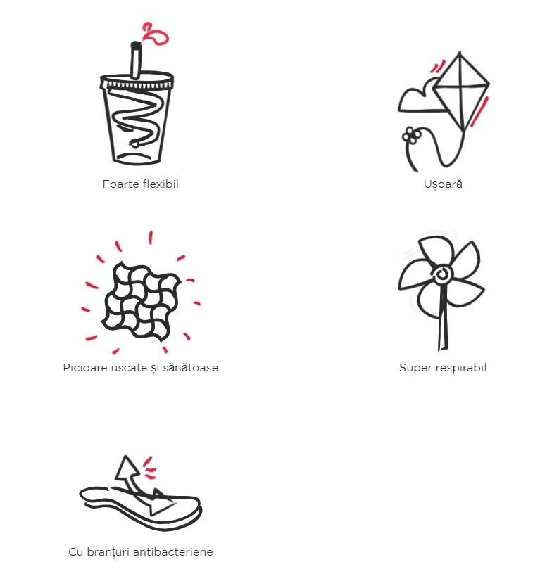 - Materiale de calitate: Fabricate din cauciuc moale ce permite piciorului sa respire fiind in acelasi timp si foarte durabile.