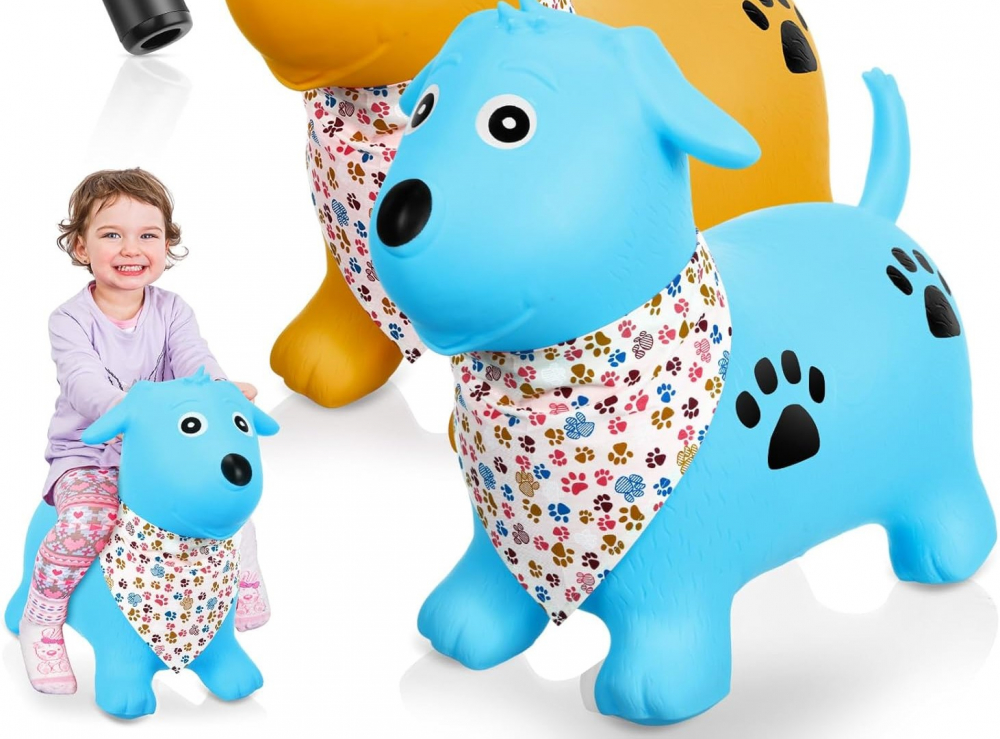Saritor gonflabil din cauciuc rezistent, cu Pompa inclusa si Esarfa colorata detasabila, 52 x 24 x 46 cm, Jumping Dog Blue