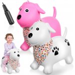 Saritor gonflabil din cauciuc rezistent, cu Pompa inclusa si Esarfa colorata detasabila, 52 x 24 x 46 cm, Jumping Dog Pink