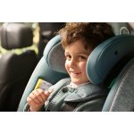 - de la 76 cm (cel putin 15 luni) la 105 cm (max. 17,5 kg), copilul este securizat cu ajutorul centurilor proprii ale sscaunului in 5 puncte de siguranta si poate calatori in sensul de mers al masinii. Scaunul este instalat cu baza „Full 360 i-Size”.