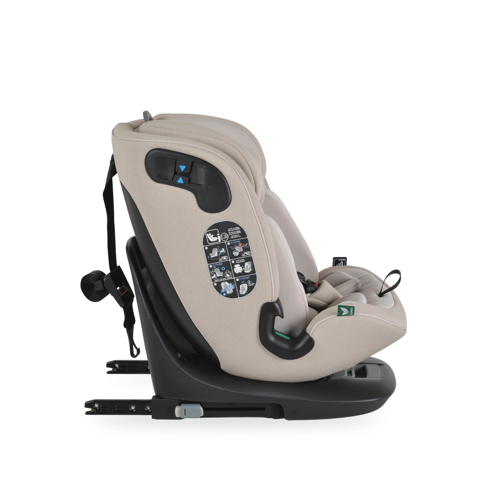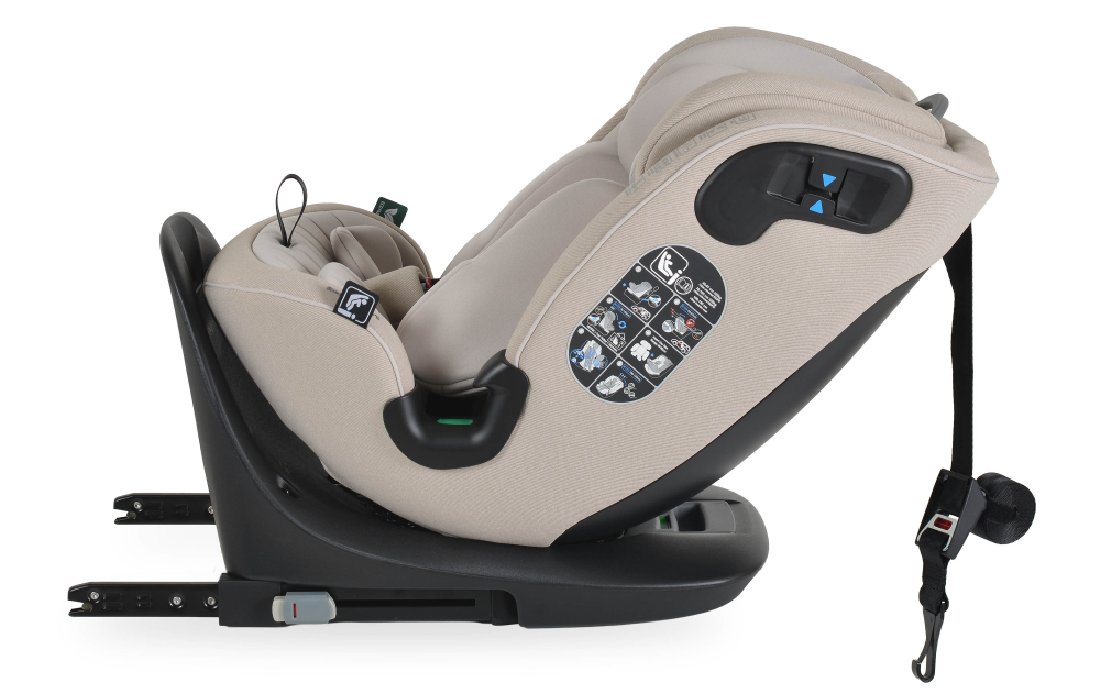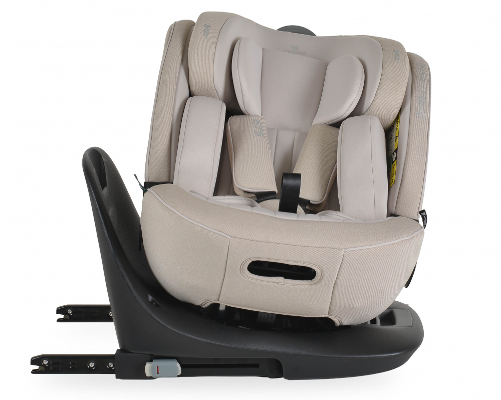 Dispune de rotatie la 360°, instalare usoara si sigura prin ISOFIX si Top Tether, materiale premium cu eticheta Eco Fabric si un design ergonomic care creste odata cu copilul.