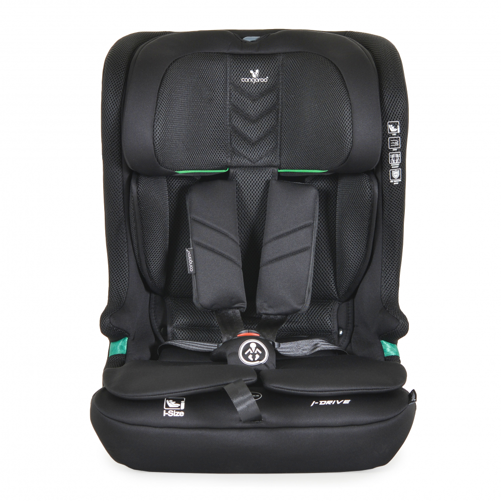 Scaun auto cu Isofix Cangaroo I-Drive Phantom Black I-Size 76-150cm,model pliabil compact,inaltime reglabila,centuri de siguranta,top tether,sistem protectie impact lateral SPS,tetiera reglabila,husa detasabila,perna reductor