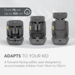 Scaun auto cu isofix KikkaBoo 76-150 cm i-Flit i-SIZE Light Grey,conectori isofix telescopici,tetiera reglabila in 12 pozitii,perna reductor,ghidaj multi centura,SPS-sistem de protectie laterala,top tether,spatar reglabil