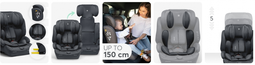 - I-SIZE 76-150 cm acoperind toate varstele de la aproximativ 15 luni pana la 12 ani (9-36 kg).