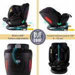 Scaun auto Diamond Deluxe i-Size Buf Boof cu Isofix rotativ 360 grade Top Tether 40-150 cm BlackJeans