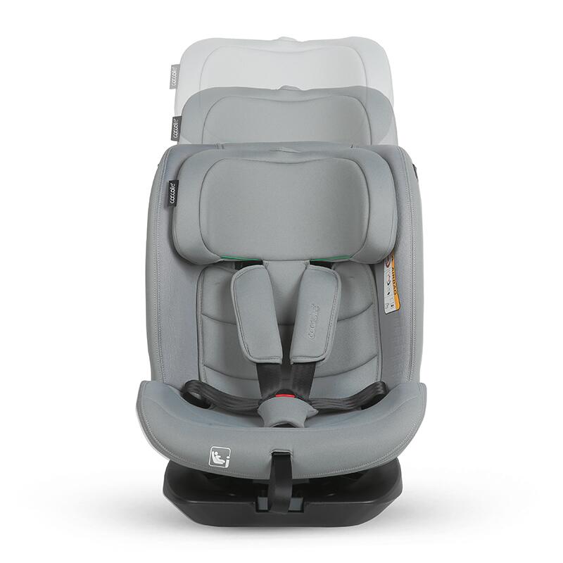 Rotire 360° pentru manevrabilitate maximăFuncția de rotație completă face ca poziționarea copilului în scaun să fie extrem de ușoară, iar trecerea de la modul rear-facing (cu spatele la sensul de mers) la forward-facing se face rapid și fără efort.