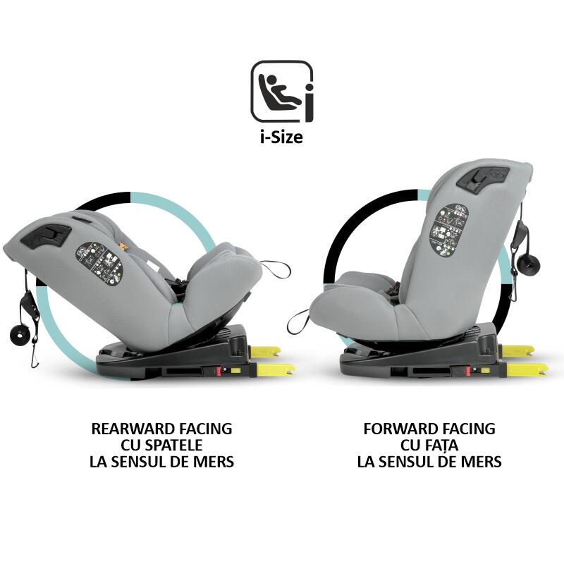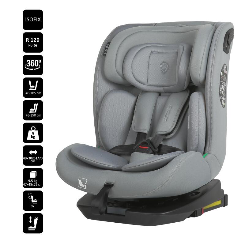 Scaun auto iSize 40-150 cm Coccolle Nobi Misty Grey cu Isofix, pozitie somn, Tetiera reglabila, Rotativ, Insert nou nascut