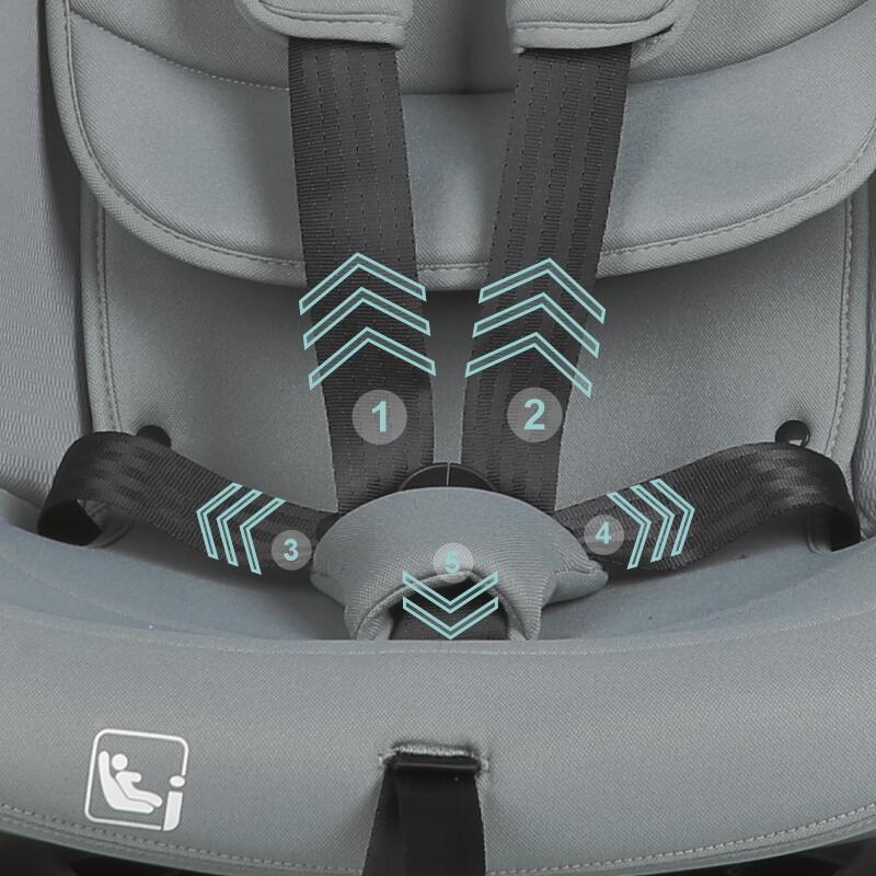 Siguranță consolidată cu Isofix & Top TetherSistemul de prindere Isofix și Top Tether oferă o ancorare fermă în mașină, reducând riscul de instalare greșită. În plus, centura de siguranță în 5 puncte și structura robustă a bazei din plastic asigură o protecție optimă în cazul impactului.