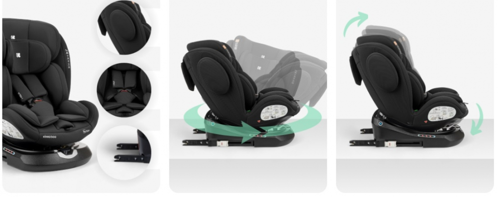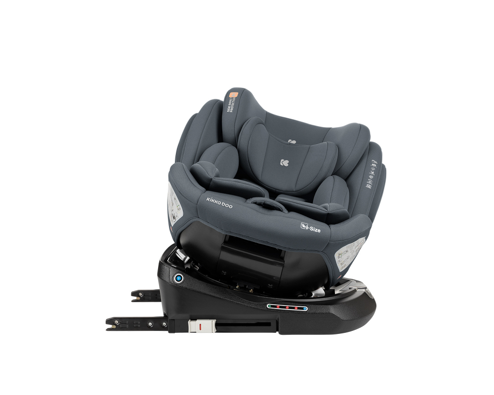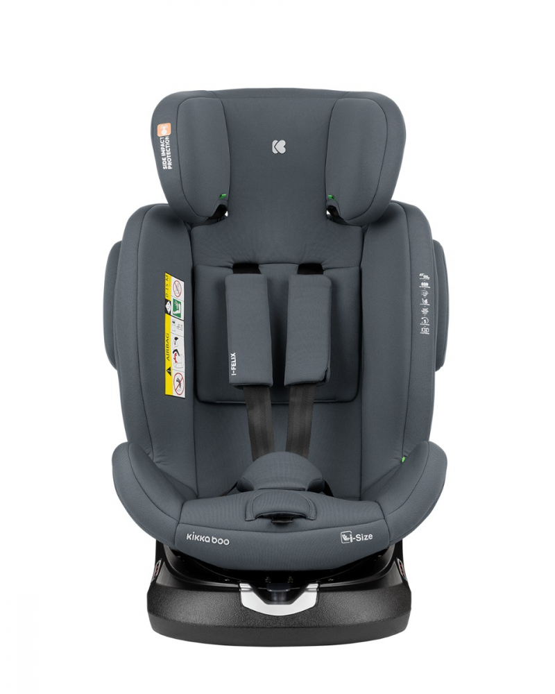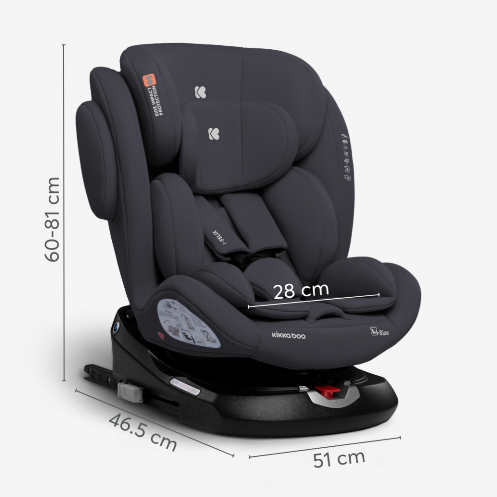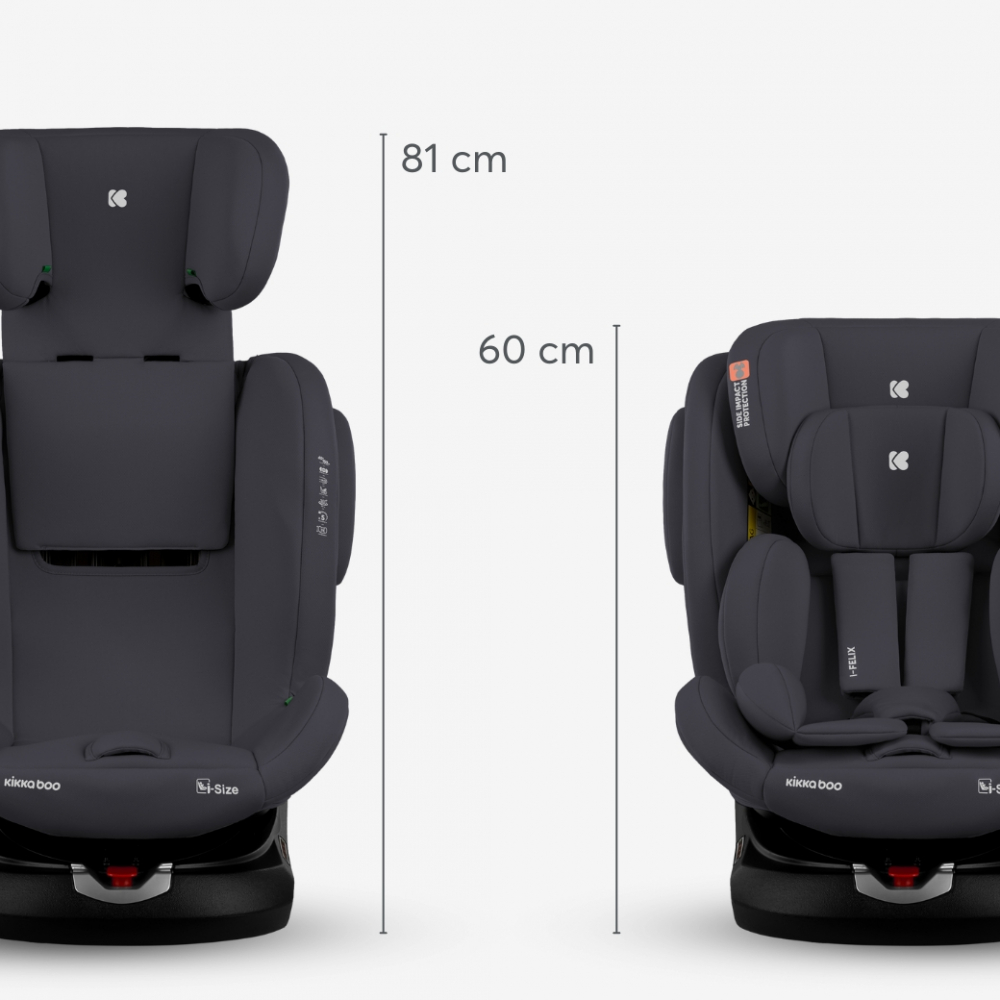 Scaun auto pentru copii cu ISOFIX KikkaBoo I-Felix DarkGrey,certificat I-Size 40-150cm,R129,SPS-protectie impact lateral, tetiera reglabila 11 pozitii,sezut rotativ,5 pozitii inclinare spatar,centura top tether,reductor