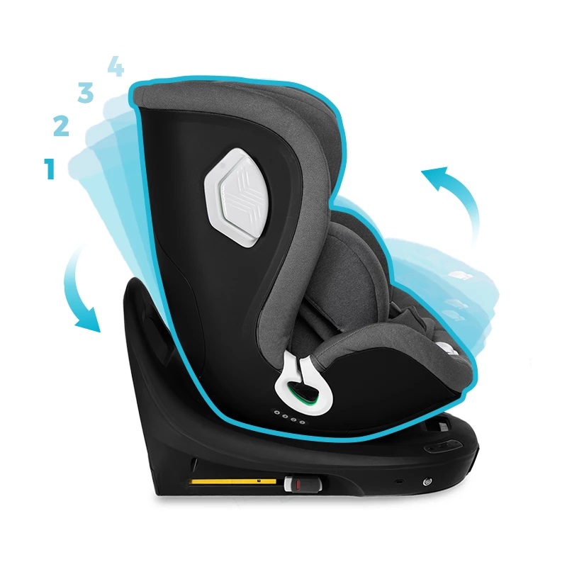 * Scaunul auto va permite sa inclinati pozitia scaunului in 4 moduri pana la 165 de grade. Va permite sa reglati pozitia copilului, ceea ce creste siguranta si confortul in timpul calariei, in special in timpul somnului.