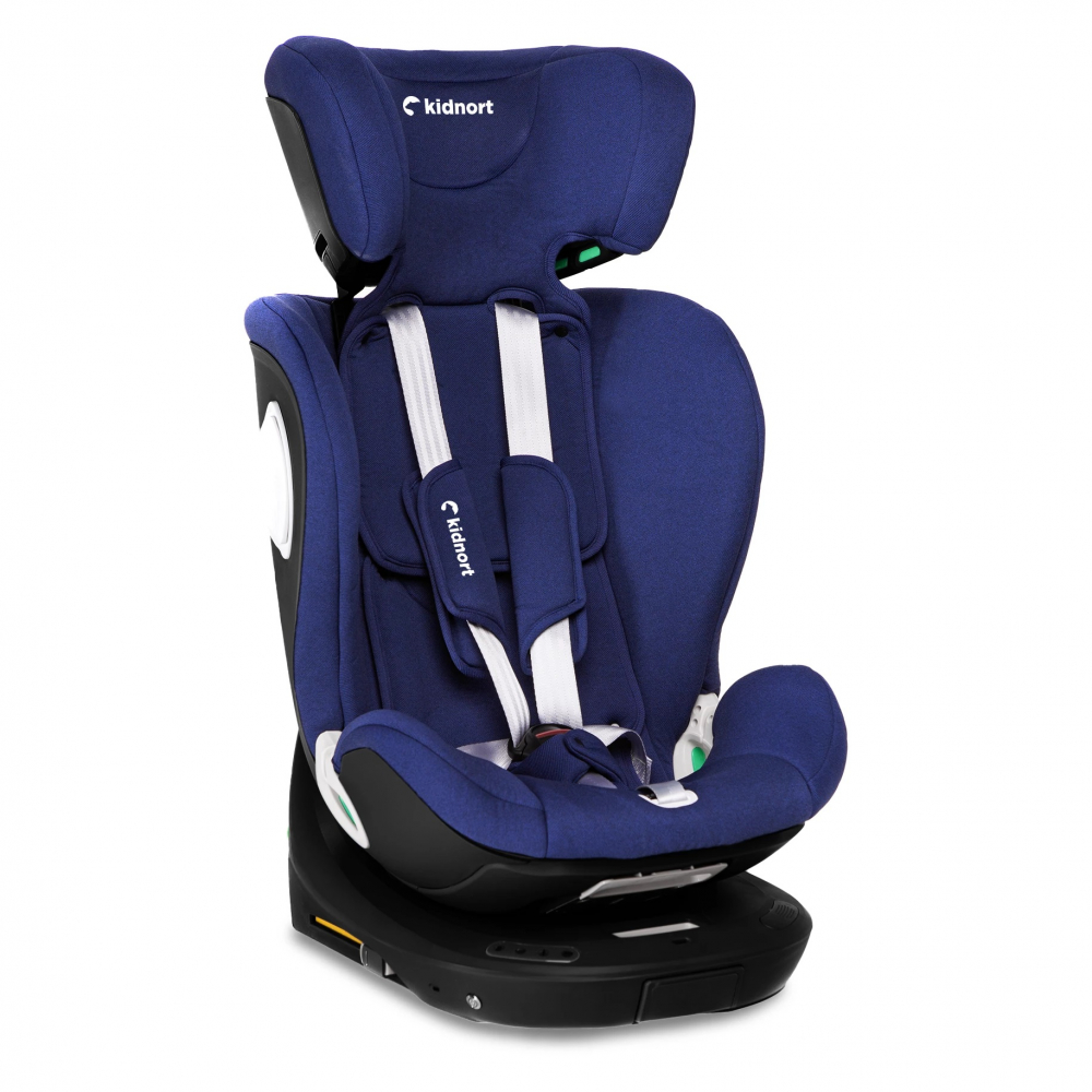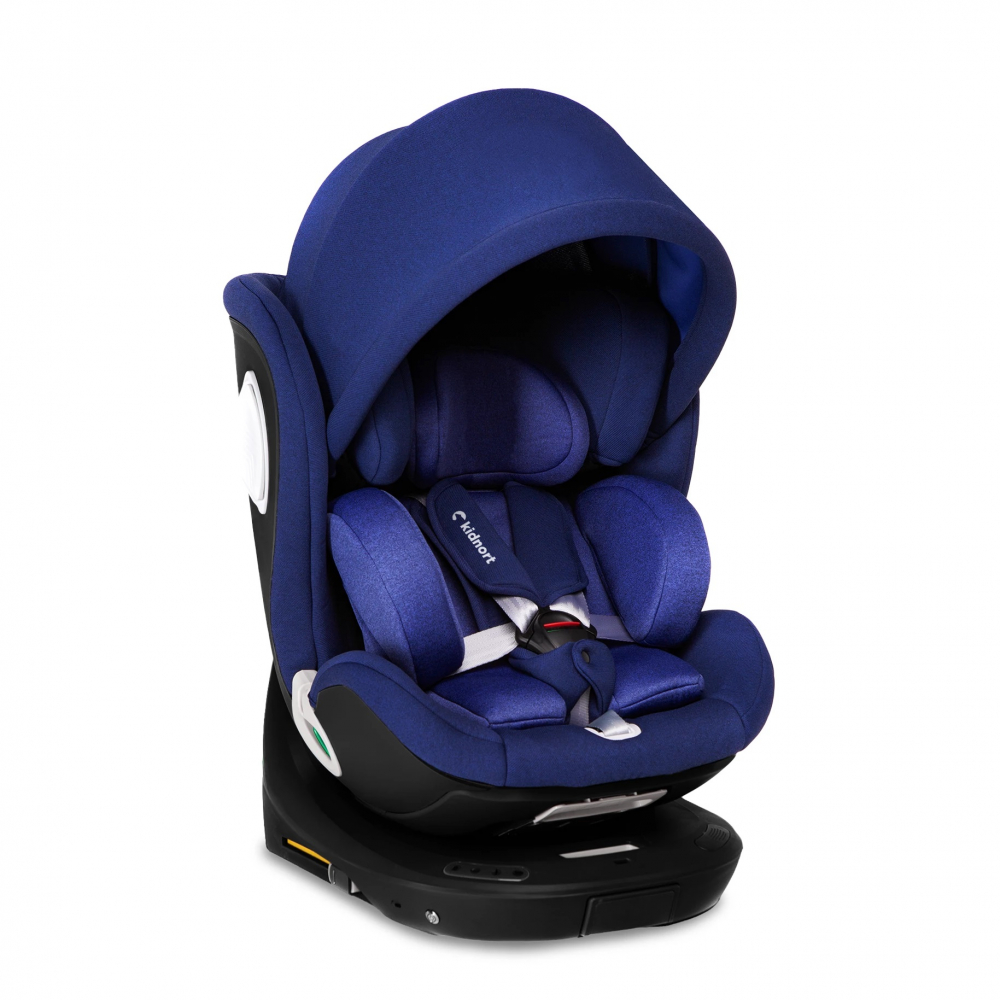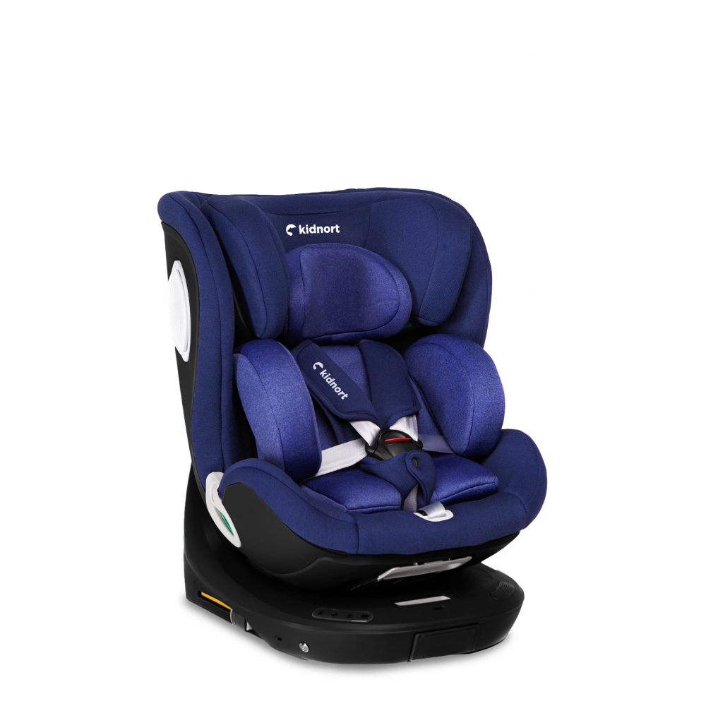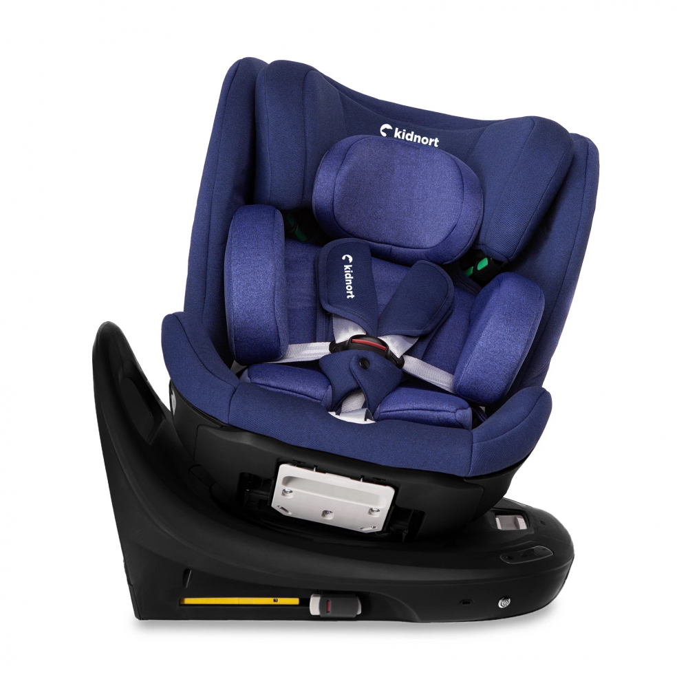 Scaun auto pentru copii, Kidnort, cu baza isofix, picior stabilizator, rotativ 360, i-Size R129, tetiera cu spuma de memorie, 40-150 cm, parasolar reglabil, Orn Blue