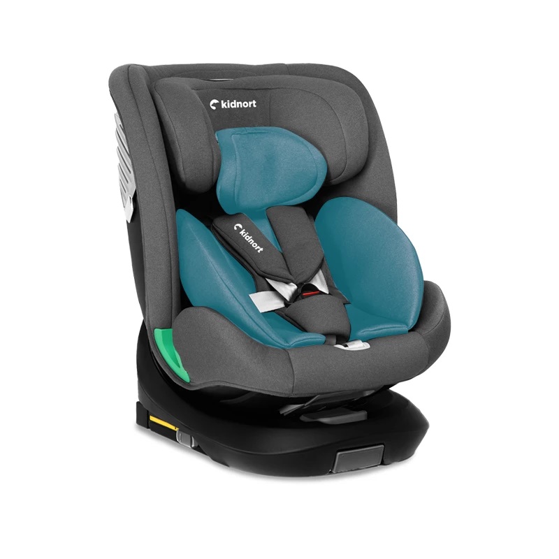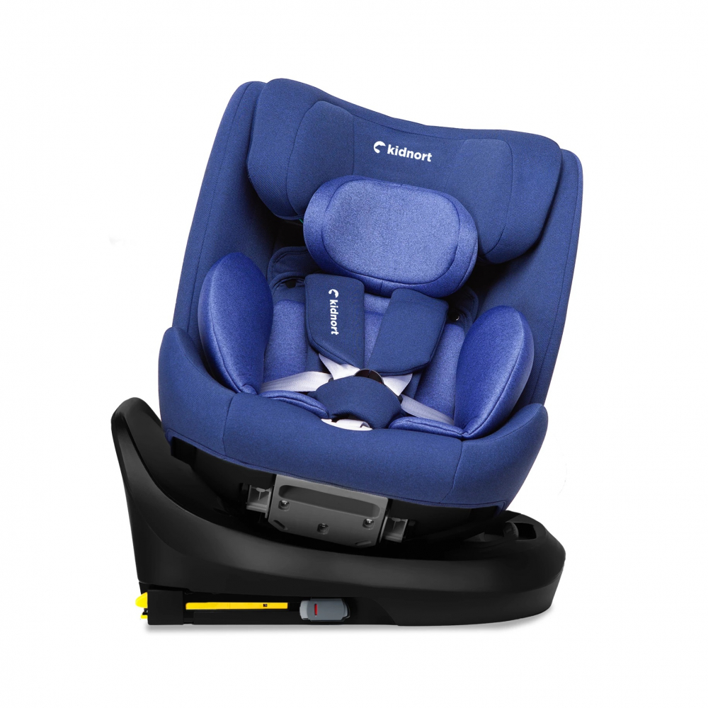 Scaun auto pentru copii, Kidnort, cu isofix, rotativ 360, i-Size R129, cu picior stabilizator si tetiera reglabila, 40-150 cm, dimensiune 46.5 x 35 x 56 cm, Radjur Blue